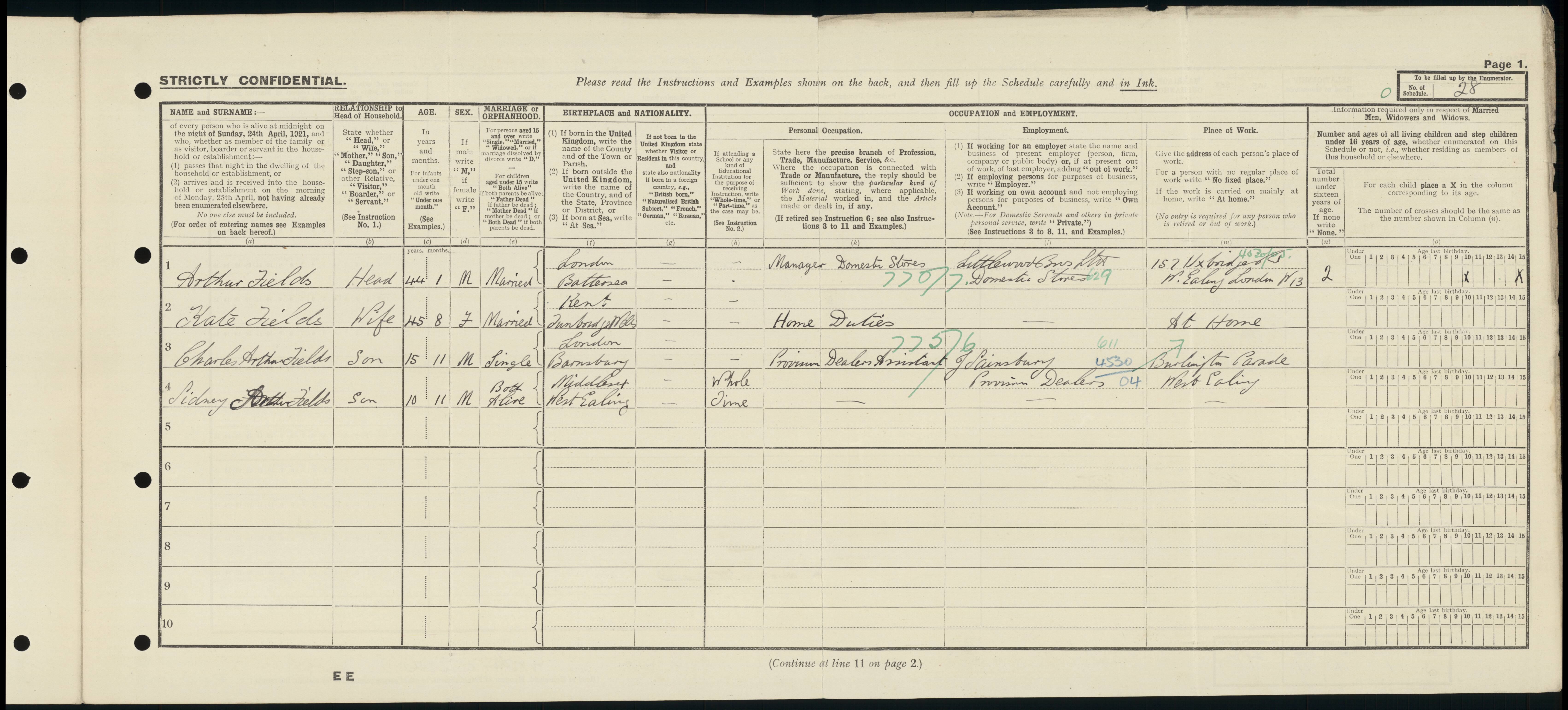 • Lived at: 157 Uxbridge Road, 1921, Ealing, W10.