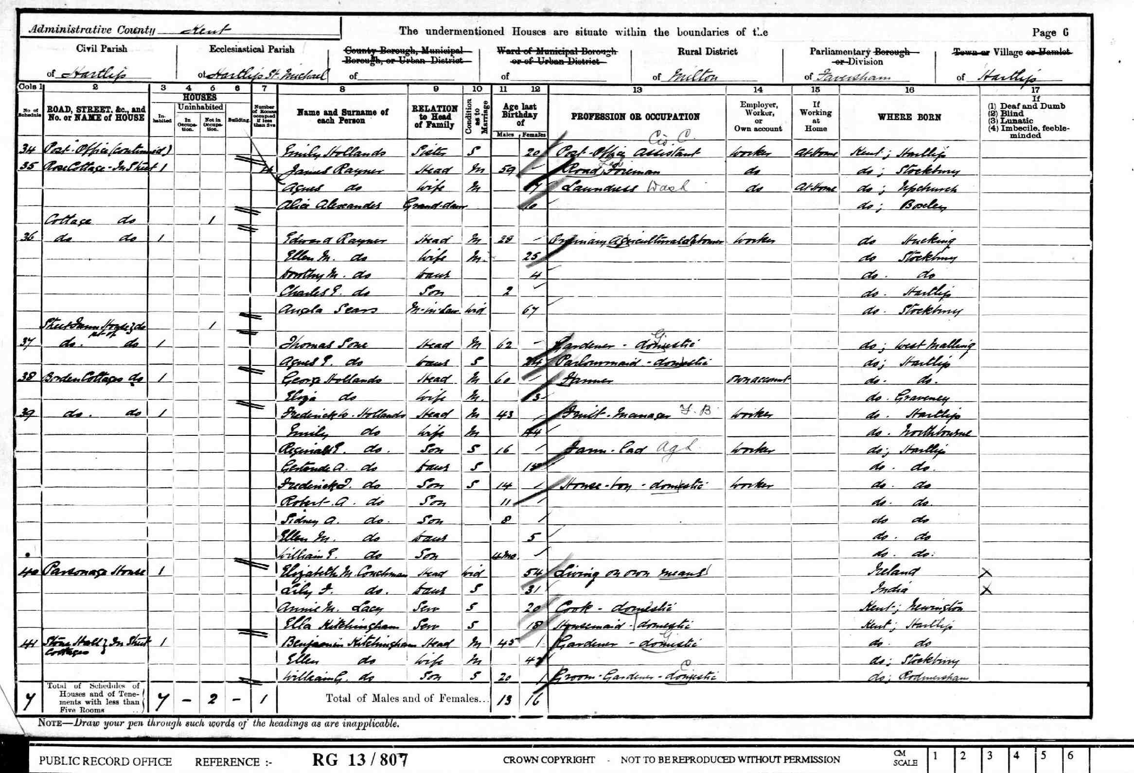 • Lived at: Rose Cottage, Hartlip, 1901, Kent, England. Staying with maternal grandparents (Rayner)