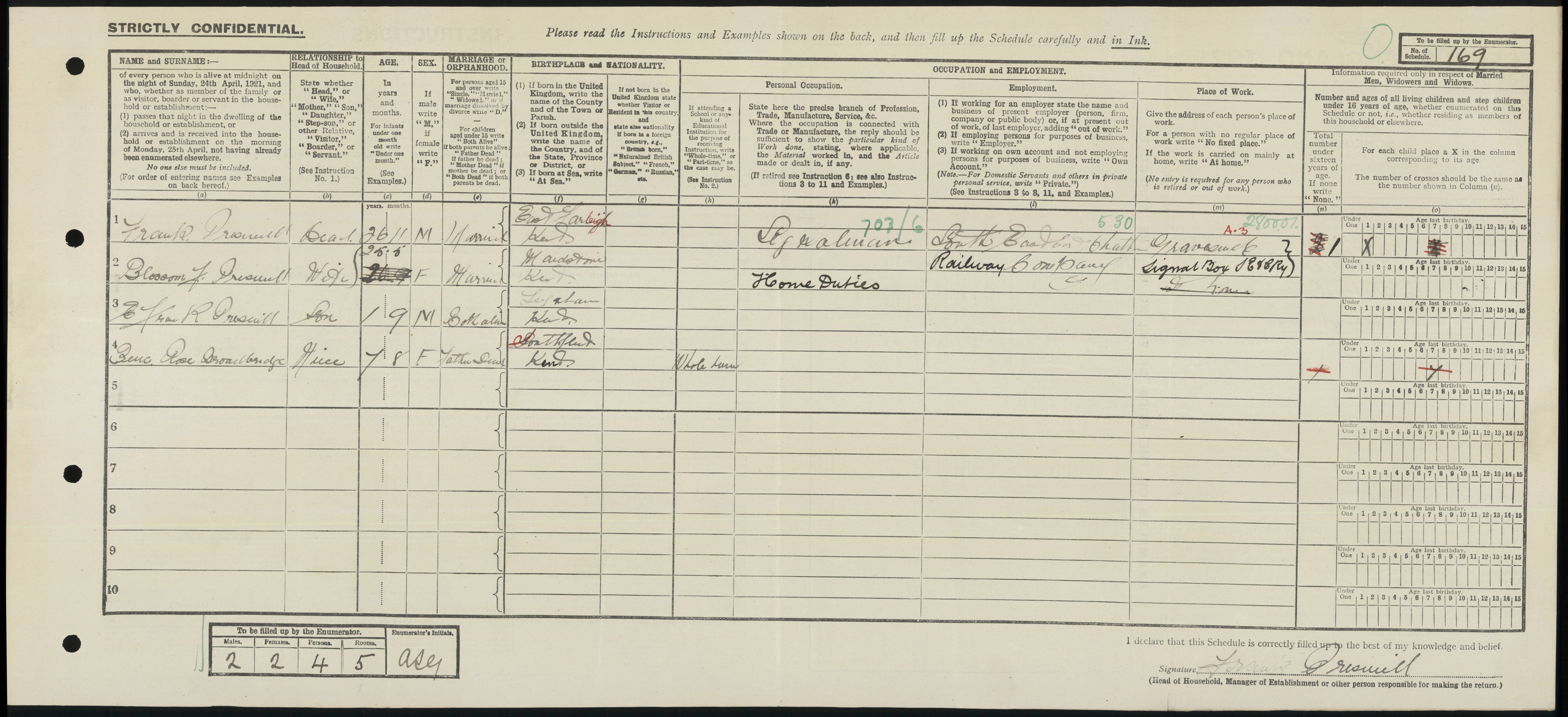 • Occupation: Signalman, 1921, Teynham, Kent, England. South Eastern & Chatham Railway Company