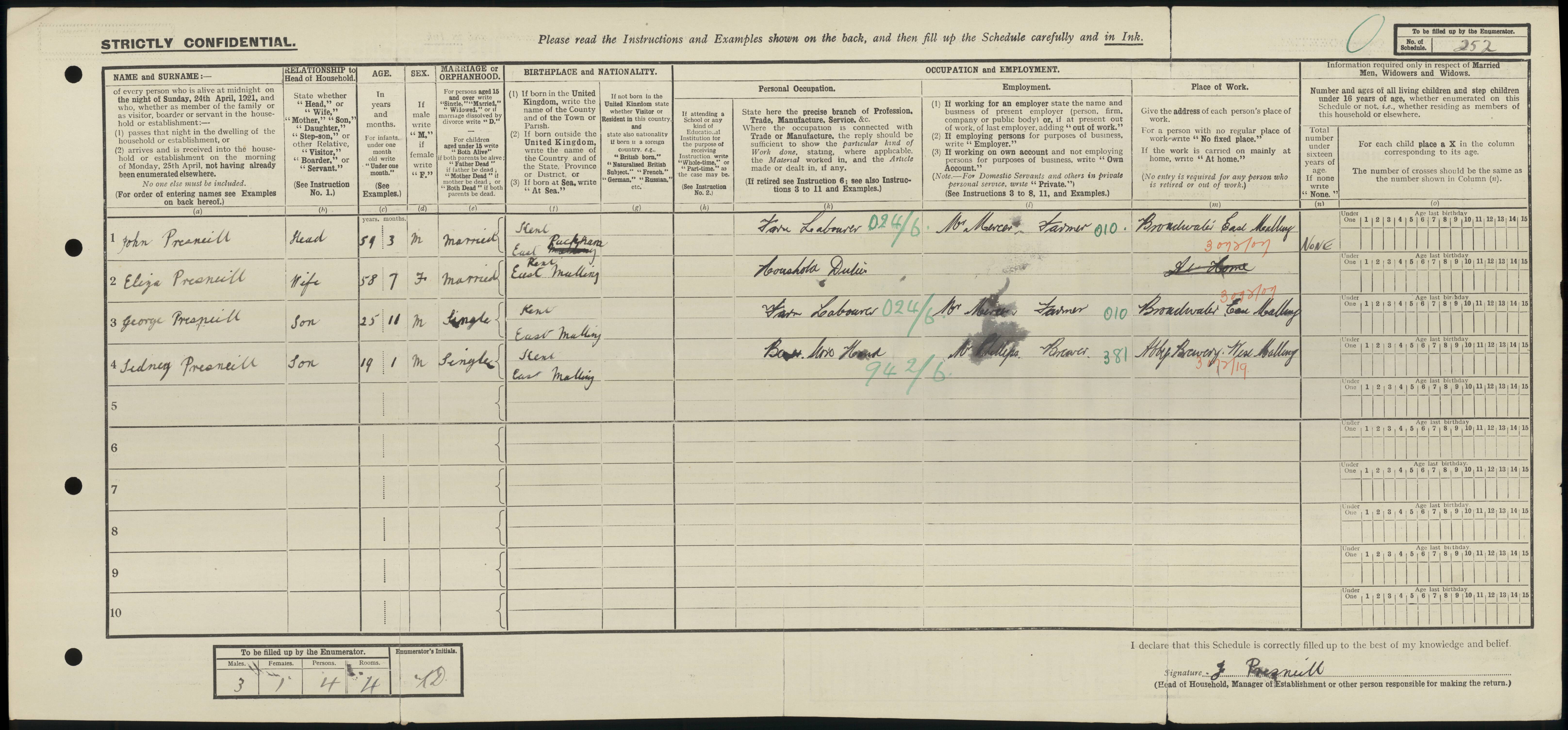 • Occupation: Farm Labourer, 1921, East Malling, Kent, England. Employer: Mr Mercer Farmer